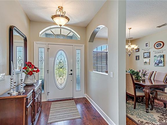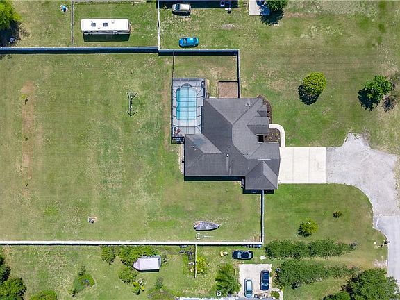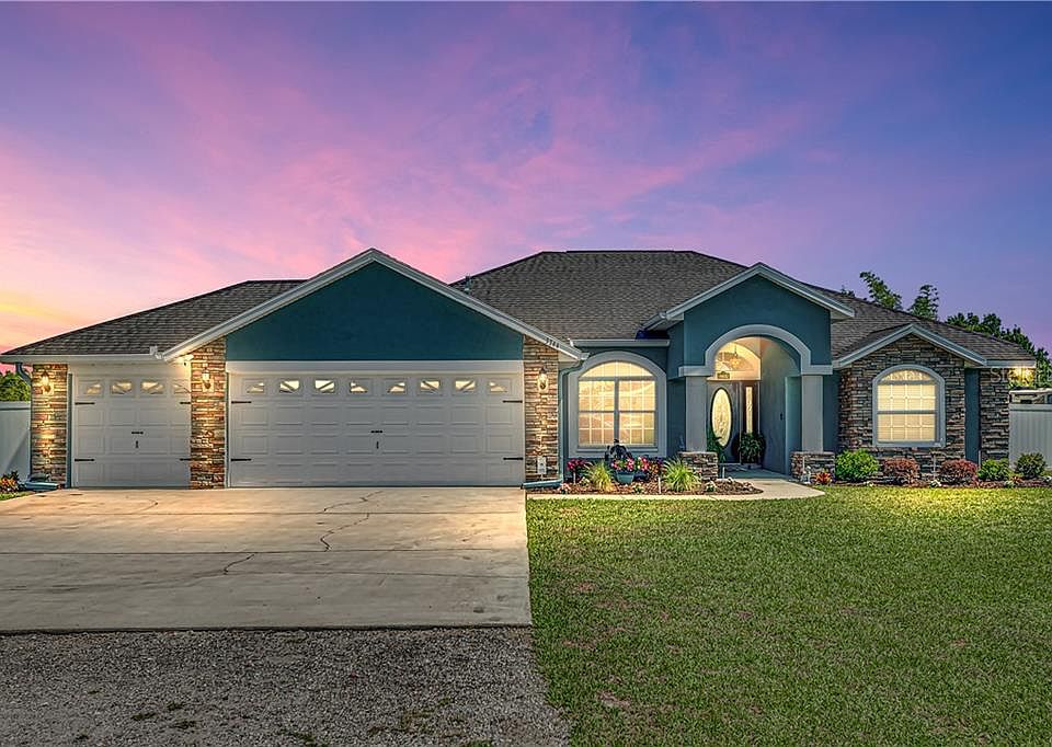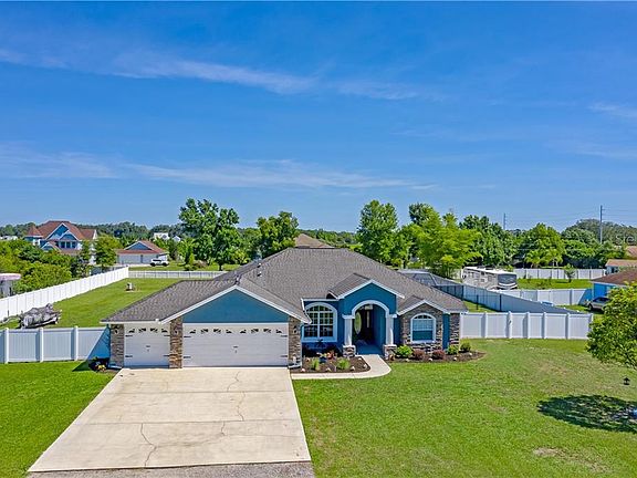 *Back on the Market, Buyer Got Cold Feet*. Gorgeous four bedroom, three bathroom house on an acre that's not in an HOA! Fully fenced back yard (PVC privacy fence) is PERFECT for storing all of your outdoor toys like boats, RVs, trailers, ATVs, and more. With roughly 2200 sq/ft of living space, there's equally as much room to stretch out inside as you have outside. Walking through the front door there is a small foyer with the formal dining room to your left with a small pass-through cut out in the wall. To the right is the master suite overlooking the screened lanai and pool! Straight ahead is a sitting area / formal living room before you enter the combination kitchen/family room. Solid surface floors throughout the main living space are perfect for pets or quick clean up of everyday messes. The kitchen is a great size at 13x13, with rich wood cabinets, granite counters, and stainless appliances. There is also a closet pantry, custom range hood vent above the microwave, a desk/coffee bar, custom cabinetry around the refrigerator, and a breakfast bar/peninsula. A small dinette area sits just to the side in the nook next to the kitchen and then you are in the family room which opens up into the hallway with the bedrooms, the master to the right, and the rest to the left. Added bonus, the house is wired throughout with speakers in master bedroom and bathroom, garage, pool area, family room, and dining room. The remaining rooms are wired but need speakers. The family room is wired for surround sound. The master suite has very subtle vaulted ceilings, a massive master bath with a separate garden tub and glassed-in shower, dual vanities, and walk-in closets. There is also a set of sliders that lead out to the pool deck. Outside is a covered seating area and a large screened-in 16 x 32 salt water heated pool, built as a sports pool with shallow water at both ends and while not pictured, there is a child safety fence that comes with the home. The back yard is level and enormous! There's also a small garden area built up with retaining walls that has irrigation setup for watering. Even though the house was built in 2006, there are still plenty of updates, including a new A/C system in 2016 and new exterior paint in 2019. Set up a showing today to see this home, it's going to go fast!