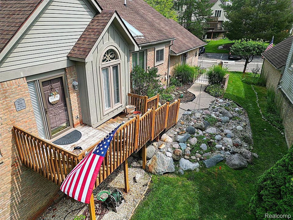 Welcome to The Legends! This stunning 3-bedroom, 3-bath condo has been beautifully updated and meticulously maintained. From the moment you arrive, you’ll notice the nicely landscaped grounds and the pride of ownership throughout. Step inside to find all new carpet and windows. Just off the entryway, the living room (or optional office) features built-in shelving and cabinets. The spacious family room boasts vaulted ceilings, a cozy gas fireplace with a new mantle, a wet bar, and access to the raised deck—perfect for entertaining. The dining room flows seamlessly into the kitchen, which offers a breakfast nook, granite counters, plenty of cabinetry, and newer appliances including a double oven—ideal for hosting holidays. The primary suite is a true retreat, complete with dual walk-in closets, a vanity area, and a spa-like ensuite with a soaking tub, walk-in shower, skylight, and dual vanity. Enjoy peaceful mornings or evenings on your own completely private Trex deck. The main floor also includes a second bedroom, a full bathroom, and a laundry room.