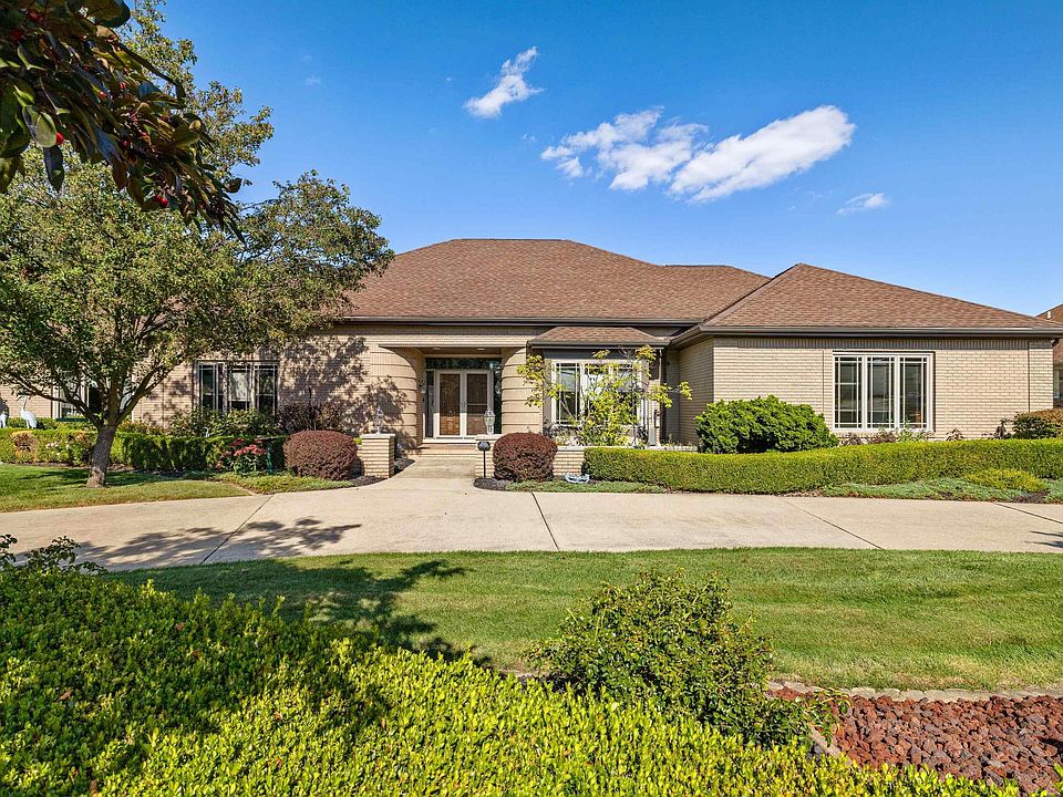 Sprawling ranch in sought after Villa Di Fiore sub! The first thing you see as you pull in the circular drive is how beautifully landscaped this half acre lot is. Featuring 4 bedrooms, 5 bathrooms, a library/office, formal dining, a beautiful great room and a finished basement, this home offers almost 7000 square feet of living space. The floor plan lets in an abundance of natural light, that highlights the Brazilian hardwoods running throughout the home. This kitchen is a chef's dream, with tons of prep space and features dark shaker cabinets, leathered granite counters, double ovens, stainless steel appliances, an island and a peninsula that seats 4. The huge primary bedroom has a spa-like feel with it's en suite bathroom that includes a separate shower and soaking tub, and dual sinks with granite counters. A large walk-in closet completes this luxury retreat. The finished basement boasts a custom bar, a full second kitchen, fireplace, playroom and an office. The absolute crown jewel of this home is the stunning backyard that is an entertainer's wonderland. Featuring a recently redone Gunite in-ground heated pool, with hot tub, slide and diving board. A pergola and built-in gas BBQ grill complete this outdoor paradise that is accessible from the kitchen, great room, and bedroom. So beautifully maintained, there's not a thing to do here but unpack, welcome home!