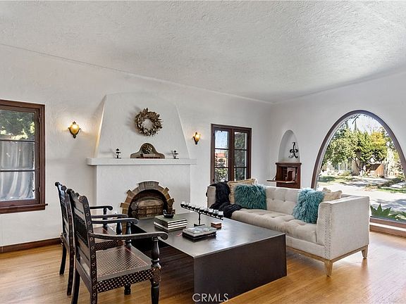 Welcome to this charming, Spanish Colonial Revival style bungalow featuring an abundance of original characteristics in the desirable neighborhood of Cal Heights. Built in 1929 this 2 bed, 1 bath home is certified by the California Heights Historic Society. The elevated lot welcomes you with mature landscaping and charming courtyard entry. Enter the home through the original front door w/ speakeasy hardware into the light filled living room. Original features in the living room include arched picture window, faux fireplace w/ decorative gas heater insert and Batchelder castle motif tile, coved ceiling with swirled plaster ceiling finish, built-in drop lid desk and cabinet. Original oak strip hardwood floors, mahogany doors and glass door knobs are found throughout the home. Enter the spacious dining area through an arched doorway, flanked by two decorative arches, original chandelier and sconces. The kitchen is an ample size with plenty of storage, updated appliances and breakfast nook featuring original built in cabinetry and bay window. The spacious bathroom features original Art Deco yellow tile with black accents, built-in cabinets and bathtub. The hallway is complete with storage closest and storage cabinet, featuring the original telephone niche. Both bedrooms are wonderful sizes, filled with natural light and deep closets with the original built-in chest of drawers. The second bedroom, currently serving as a home office is complete with French doors leading to the backyard oasis. The stunning, tranquil backyard oasis features a beautiful, centrally located fountain surrounded by mature and drought tolerant plantings. The decomposed granite pathways and Arizona flagstone makes for low maintenance. With sun filled and shaded areas this garden is the perfect place to entertain family and friends all year round! The detached garage (currently an art studio) is finished with dry wall and perfect to use for additional living space, a home office/gym or studio. The laundry room is located off the back of the home, easy to access through the side kitchen door. Central air conditioning and heating keep the home comfortable all year long. Located close proximity to top rated schools, neighborhood restaurants & boutiques, freeway access, the beach and more! This historic home is a must see!