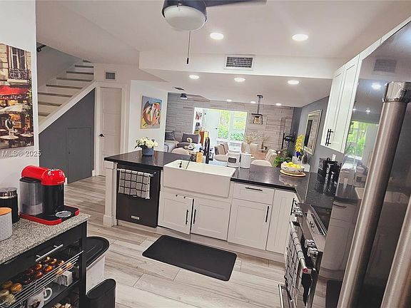 Rare waterfront townhome featuring two primary upstairs bedrooms with en-suite bathrooms and 1/2 bath on main level for guests. COMPLETELY UPDATED!! Updated kitchen, stainless steel appliances, floors completely redone. On the lower level relax on the 115 sq ft covered balcony where you can eat every meal enjoying water views. As an added extra on the upper level you'll enjoy a separate 91 sq ft terrace to view the sunsets. You'll see mega yachts pass by the canal with direct access to the ocean. The home includes a full-size washer/dryer in its laundry/utility room. All windows were upgraded to impact. This home is in Eastern Shores. Ready for move in 11/1/25.