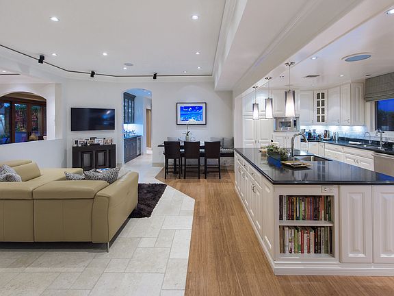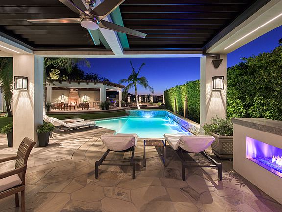 Completed with meticulous attention to the finest detail, no expense was spared on the rebuild of this once in a lifetime masterpiece including guest house & massive flat yard. Over 4,000 sf of indoor/outdoor living. Gourmet kitchen/great room will be the envy of any chef. 3 bedrooms on the 1st floor include a 2nd master suite. Ascend upstairs to an intimate family room area leading to the sumptuous master suite replete with fireplace, automated curtains, lavish master bath with steam shower and separate closets. The exquisitely outfitted movie theater with Dolby Atmos Surround will leave you in complete awe and also features a 75 flat screen for regular viewing. Custom furnishings and seamless smart home automation. Walking outside is like being transported to Hawaii. Swaying palms, head-on sunsets, saltwater pool/spa with waterfalls, covered loggias, fireplaces, outdoor kitchen and beautiful breezes. The ultimate California lifestyle. If you have to stay home, there's no better place