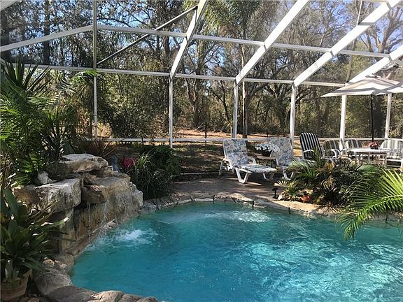This Upscale Farmhouse has 5 bedroom/ 3 Bath pool home has a long front porch with swing sitting secluded in the middle of an oak filled fenced 5 acres+ parcel that allows horses. This amazing luxury farmhouse retreat has a tropical screen enclosed heated pool with waterfall and cover porch; beautiful farmhouse kitchen with Granite counter tops, farmhouse deep sink, propane range, stainless steel appliances and cabinets; Great room with warm stone fireplace; Oversized master suite with sitting area, pool access, upscale bathroom with walk in shower and jetted tub; A second master suite with private bathroom with walk in shower; two additional large bedrooms; large outdoor shed; Formal dining room (currently used as 5th bedroom) as well as so many other features. Buyers to verify all measurements and information. Buyer will have closing costs and/or fees from title company even with on a cash purchase. If you are looking for your private farmhouse close to everything but with elbow room and privacy for your life then this is your new home.