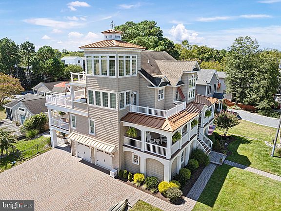 Welcome to 37454 3rd St, an extraordinary custom-built residence in the sought-after waterfront community of Bay Vista. Designed with timeless architecture, refined detail, and every modern convenience, this four-level home offers over 4,300 square feet of coastal luxury with sweeping views of the Rehoboth Bay and Canal. Built in 2009 and meticulously maintained, it was crafted for elegance and everyday comfort. From the grand foyer with wide-plank hardwood floors, elegant moldings, and soaring ceilings, natural light pours through oversized windows, drawing attention to water views from multiple vantage points. An elevator connects 3 levels, providing convenience and accessibility for groceries, luggage, or simply enjoying the ease of multi-level living. The main level features a spacious living room anchored by a gas fireplace and custom built-ins—perfect for quiet evenings or lively gatherings. A coastal-inspired dining area flows seamlessly into the gourmet kitchen, equipped with premium stainless-steel appliances, granite countertops, a designer tile backsplash, double wall ovens, and an expansive peninsula with bar seating. A walk-in pantry and extensive custom cabinetry maximize storage, while the open design ensures the kitchen is as social as it is functional. Additional living spaces across multiple levels provide flexibility for any lifestyle, from media rooms and lounges to private offices or play areas. A ground-level suite with wet bar and additional stove creates the ultimate entertainment hub. Multiple decks extend living outdoors, offering the perfect perch for morning coffee, afternoon sun, or toasting vibrant sunsets over the bay. Private quarters include five generously sized bedrooms, each with en-suite bath. The primary suite is a retreat with tray ceiling, sitting area, expansive walk-ins, and a spa-inspired bathroom featuring dual vanities, makeup station, soaking tub, and large walk-in shower. Two additional half-baths add convenience for family and guests. Outdoors, a heated in-ground pool with waterfall feature and large gas fire pit are the focal point, surrounded by a spacious patio, two custom outdoor showers, and a fully equipped kitchen for effortless al fresco dining. Professionally landscaped grounds, multiple decks, and serene bay breezes create an unmatched coastal oasis. Practical touches include an oversized two-car garage, zoned central air, propane heat, and a tankless water heater. Upscale finishes—recessed lighting, crown molding, and premium materials—reflect the home’s enduring quality, while a fire suppression system adds peace of mind. Bay Vista offers tranquility along the water while remaining just minutes from Rehoboth Beach. Downtown restaurants, shops, and galleries are five minutes away, while the iconic Boardwalk and beach are less than two miles from your front door. Local marinas nearby open the door to endless boating and water adventures, and with no HOA, the freedom and flexibility are rare. 37454 3rd St is more than a residence—it is a lifestyle. Mornings begin with the beauty of the bay, afternoons unfold by the pool or on the beach, and evenings end with glowing sunsets over the water. Whether envisioned as a year-round residence, a vacation retreat, or a luxury rental, this home offers location, craftsmanship, and timeless coastal value.