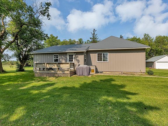 Welcome to your own slice of rural paradise! This remodeled 2-bedroom, 1-bath rambler sits on 20 acres of prime countryside, offering the perfect blend of comfort, functionality, and outdoor opportunity. With approximately 15 acres of tillable land and 1–1.5 acres of pasture, this property is ideal for hobby farming, gardening, or simply enjoying wide open space. The home shines with a complete 2023 renovation, featuring new plumbing, vinyl siding, windows, doors, roof, and flooring—plus modern appliances that make daily life a breeze. The spacious 12x10 bathroom is a standout, boasting dual sinks, a luxurious tile shower, and a deep soaker tub for ultimate relaxation. The kitchen has rich cherry cabinets and sleek granite countertops. Two decks extend your living space outdoors, ideal for taking in the peaceful views or watching local wildlife—including trophy deer—right in your backyard. Outbuildings include a massive 48x80 pole shed, a 36x64 barn, a grain bin, and a silo, providing ample storage and potential for livestock or equipment. A 24x22 detached garage rounds out the property, offering even more utility. Whether you're looking for a quiet country home, a hunting haven, or a working hobby farm—this property delivers. Don’t miss this unique opportunity to live the rural dream with modern comfort and room to grow!
