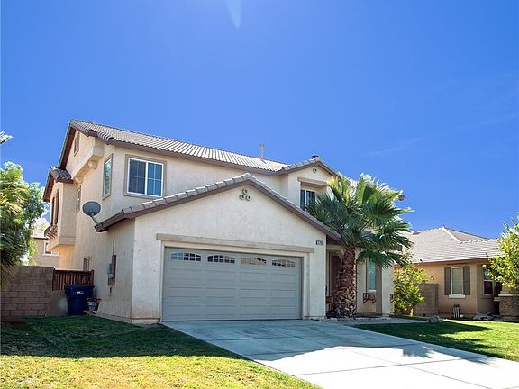 BACK TO THE MARKET!!!!! Located on a peaceful Palmdale cul-de-sac, this two story home enjoys stylish builder upgrades and custom paint throughout. The entrance of the home opens to an impressive diagonal set tile floor that runs from the entrance through the formal dining room and into the cheerfully bright kitchen in the rear of the home. Across from the dining room is the formal living room. The spacious family room is highlighted by a contemporary fireplace. Tile counter tops, a large center island, counter top range, built in oven and plenty of cabinetry are all found in the convenient kitchen. At the top of the staircase, the large master suite boasts separate shower stall, oversized bath, large walk-in dual sinks and tile floor in the bathroom. The remaining are pretty good sized bedrooms and full bathroom. Outside, a striking stamped concrete covered patio runs along the rear of the home providing for hours of relaxation. Close to The Palmdale Aerospace Academy, excellent distance to Northrop Grumman, Nasa, Lockheed Martin and Grocery Stores, ideal for big Families with children. Within walking distance to The Palmdale Aerospace Academy and the Magnet Cactus Middle School. Call your favorite agent and make an appointment to see it today!