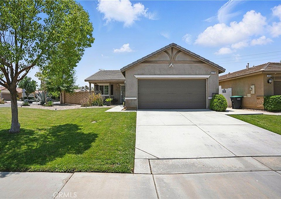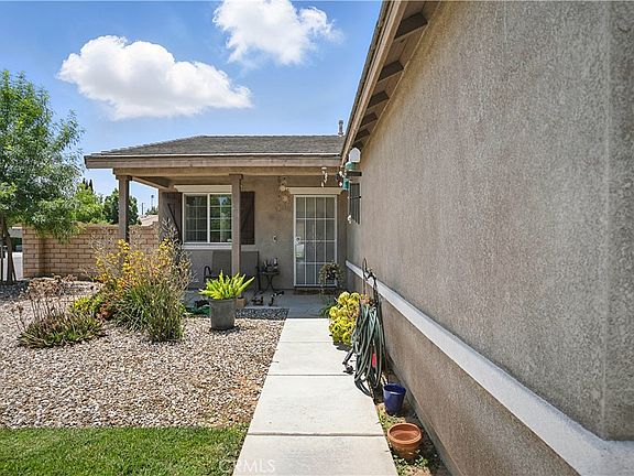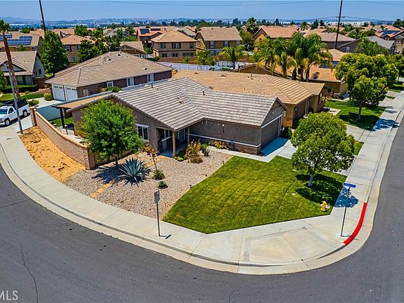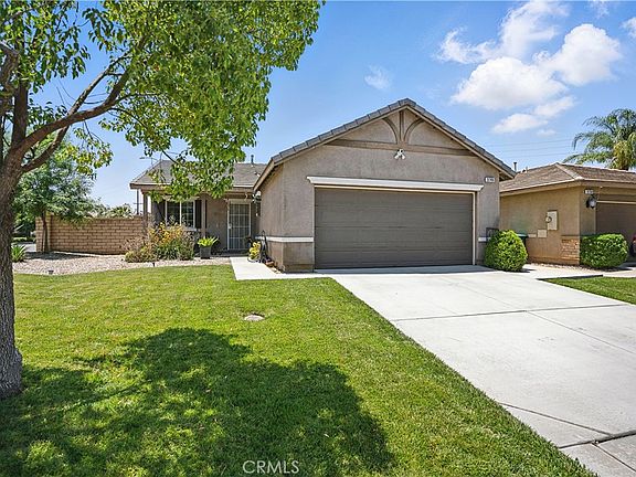 Single-story home located in an established neighborhood in Perris. This property features 3 bedrooms and 2 bathrooms, with an open living area and natural light throughout. The kitchen includes ample cabinet space and is adjacent to the dining area. Tile and laminate flooring are present in common areas, with carpet in the bedrooms. The home includes an attached 2-car garage and a spacious backyard with potential for customization. Central heating and air conditioning. Situated on a residential lot with a concrete driveway and front landscaping.