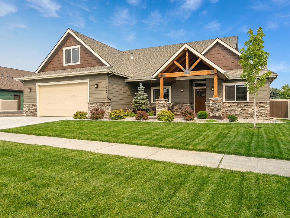 Two Year New! Custom Craftsman Rancher in the quiet Meadow Ridge subdivision with a 26'X45' Shop, a 16x14 door, and a 100amp service panel! Spacious Open Floor Plan, 2,408SF with 3Br/3Ba plus large bonus/bdrm upstairs! This home is situated on .364 of an acre and backs up to the Community Park, with gorgeous views. This home is any gourmet cooks dream with an upgraded kitchen equipped with professional GE Café Appliances. Open Living space with vaulted ceiling and exposed beam and a rock gas fireplace w/custom mantel. Master Suite with vaulted ceiling, French Doors, and oversized walk-in closet. Addtl.features incl. a Hot Water Circulating system; 10' Patio Door; 240V at patio; a gas bib; frost-free water standpipe at shop, extra wide driveway in front with long asphalt driveway to shop.