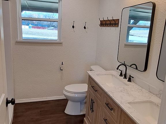 Large room Country Farm House on 2 acres outside of Pauls Valley. 4 large bedrooms, 2 large bathrooms. Master Bedroom on opposite end of house away from other 3 bedrooms. Large Eat-in Kitchen with sitting area and Family Room/Theater Room. Master has large walk-in closet with adjoining bath and laundry. Beautiful tree shaded backyard deck overlooking densely wooded area. Quiet peaceful serene setting