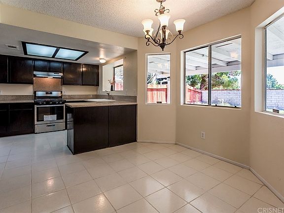 Beautifully remodeled home with spacious floor plan in desirable Palmdale neighborhood. New two-tone interior paint and new carpet. Highlights include living room and formal dining area with soaring ceilings and lots of natural sunlight. Family room with cozy fireplace, ceiling fan, and window cooler unit. Kitchen features granite counter tops, stainless steel appliances, and breakfast nook. Master bedroom suite includes walk-in closet and private bathroom with dual sink vanity, granite counter tops, decorative mirrors, and bathtub. Ample sized backyard will be great for entertaining with a huge covered patio area and above ground spa. Come and see it before it's gone!