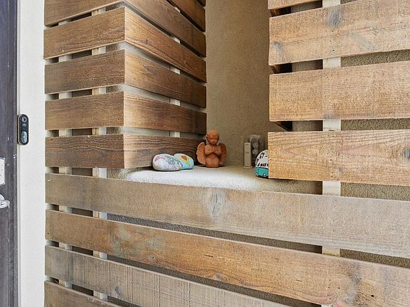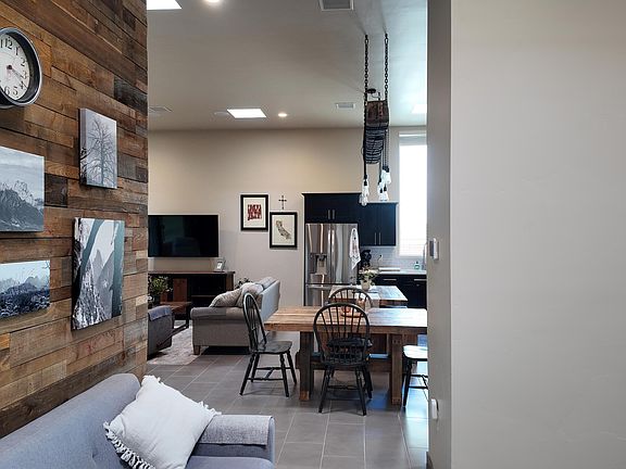Step into this stunning smart home with an open-concept kitchen where rustic charm meets modern functionality. The space features soaring ceilings, tons of natural light, and custom touches throughout. Rich, dark cabinetry offers generous storage, beautifully offset by white quartz counters and a classic subway tile backsplash. A standout feature is the reclaimed wood used throughout -- including the striking beam that anchors the exposed-bulb pendant lights. This wood adds warmth, texture, and unique character. The kitchen is outfitted with top-tier stainless appliances, including a gas range with a custom vent hood, French door and dishwasher. A deep farmhouse sink with a commercial-style faucet sits below a tall window. This fully integrated smart home also includes built-in surround sound, no backyard neighbors, and backs to a park for added peace and tranquility. Bonus: it comes with a spacious outbuilding perfect for hobbies or storage and a very large back patio perfect quiet evenings.