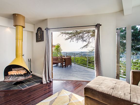 Mid Century modern home tucked away in the hills of Montecito Heights. The open floor plan leads to a large deck through french doors that offers expansive views of NELA. Enjoy these views from the living room and master bedroom as well. Engineered wood floors throughout. A 5 minute walk to Ernest debs park. The lower portion of the home has a studio with a kitchen and bathroom, along with a yard. Located on one of the best streets in Montecito Heights, Latrobe street.