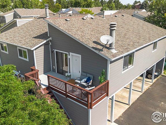 Step into this 2-bedroom, condo located in North Boulder! Positioned centrally within the complex and surrounded by lush greenery, this unit offers an inviting retreat. Ascend your private staircase to discover a brand new room sized south-facing deck that you'll enjoy year-round. Bask in the ample natural light streaming through the southern exposure and savor the scenic foothills views from your elevated outdoor deck, providing a serene vantage point above it all.Inside, you'll discover a snug wood-burning fireplace to keep you warm during winter months, along with central air conditioning for cool comfort in the summer. You will love the walk-in closet located in the primary bedroom and the additional options the 2nd bedroom offers. The pet-friendly HOA welcomes both dogs and cats, and the unit is fully equipped with essential appliances, including a newer in-unit washer and dryer. Parking is a breeze with a one-car carport, plus an additional driveway parking spot, guest parking, and a private storage closet. This unit offers privacy unlike most condos, no one above and no one below. Very quiet and a feeling of true privacy, especially with the dedicated staircase and parking at the foot of the steps. Residents have access to community amenities, including an outdoor pool and clubhouse, with HOA coverage for trash, water, snow removal, insurance, and exterior maintenance. Enjoy the all of the recent improvements made to the building including, newer roof (2019), new siding (2024), new deck (2025). The unit has newer SS kitchen appliances, washer /dryer and hot water heater (2024). Conveniently located right by Vics Coffee, Aoi Sushi, The Cork, Howard Heuston Park and the Wonderland Creek multi-use path to easily bring you to CU, Pearl St, Whole Foods, and a variety of shopping and dining. HOA allows for Airbnb rentals within City of Boulder rules. There is no better condo for the price in such a great location and neighborhood. The Boulders is a special place!