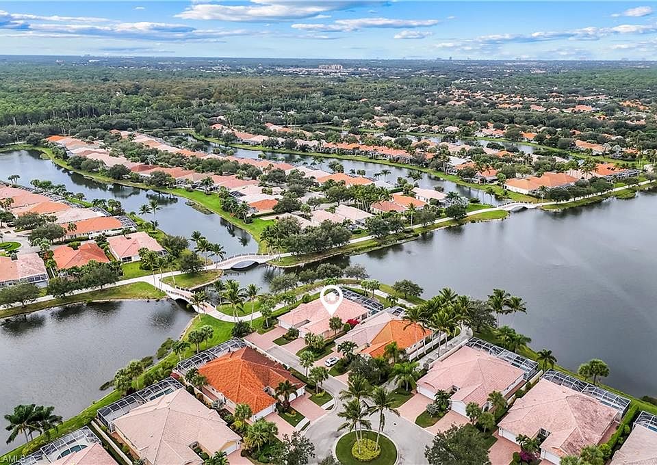 Breathtaking Western Sunsets from your private pool and lanai looking down an amazing long lake view in beautiful Island Walk. This Capri model is perfect for relaxing and entertaining. This spectacular scenery can be enjoyed from the kitchen and living areas. This 2 bedrooms/2 full baths villa is sunlight filled. Tile flooring throughout the main living areas. Built in cabinetry in the living area for your media needs. The quiet cul de sac location adds serenity to your oasis. Residents of Island Walk residents enjoy access to exclusive amenities including a Resort style pool, a separate lap pool, a newly renovated Towncenter, 7 Tennis courts, 4 pickleball courts, bocce, a state of the art fitness center, Restaurant, Hair and Nail Salons, Car Wash, Gas Station and Post Office. Close to Naples’ sandy beaches, wonderful shopping, and dining.