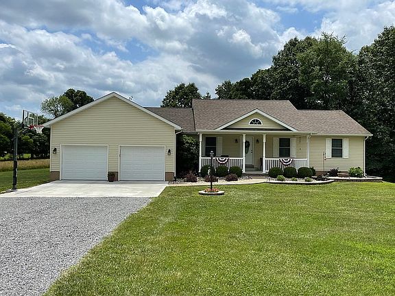 Custom Ranch on 6 acres, 15 minutes from Marion. This well-maintained home features energy efficient Anderson windows, a large front porch and a composite Ultra Deck patio in the rear. New in 2020 was the addition of a 30x40 steel engineered building, a 22x22 concrete garage apron in front of attached garage, an adjustable basketball goal and major landscape improvements with accent lighting. The home received an interior remodel in 2019 that included all new granite countertops, backsplash, a suite of Whirlpool stainless appliances and a kitchen island that accommodates 3 bar stools. Also included in the remodel was the addition of a custom tiled walk-in shower in the master bedroom that features an Onyx base with matching vanity top and premium vinyl floor tile. New luxury vinyl flooring throughout the main floor and new bedroom carpeting was added immediately following the remodel. The completely finished walk-out basement is the real highlight of this residence. Completed a few years after the original build, it features white pine walls, a custom gas fireplace, a full bathroom, an open floorplan plus two large storage/multipurpose rooms (one with double closets). A well maintained, five-person Aspen Hot Tub is located immediately outside the walkout which features newer Jeld-Wen French doors. Also of note: An energy efficient Trane heat pump was installed in 2016. A 10x16 Cook Portable Warehouse, on a concrete slab, offers additional storage near the rear of the property. See Description