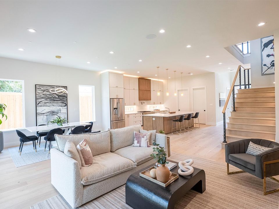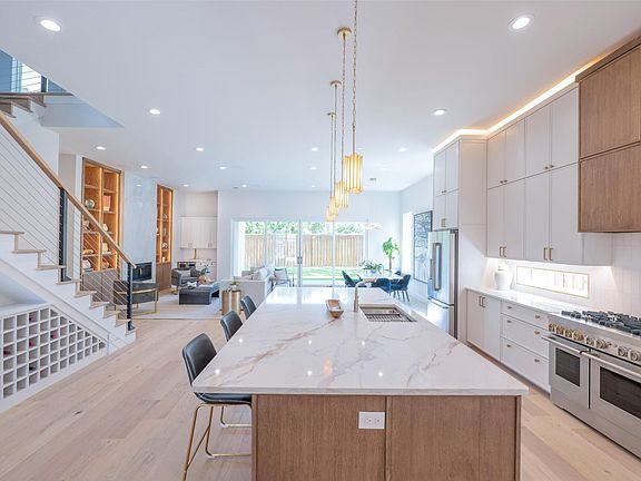 Elegant living in this contemporary Dallas residence is proof you really can have it all! Enviably set in the highly sought-after Midway Hollow neighborhood, this stunning 4-bedroom, 4-bath haven showcases a gorgeous 4,474 sq ft open-concept interior with lofty ceilings, expansive picture windows, and a fusion of beautiful tile and hardwood flooring. Entertain guests around the living area’s stately fireplace before serving delectable dishes in the dining corner. A chef-inspired kitchen beckons avid cooks with its premium stainless steel appliances, handsome cabinetry, quartz countertops, oversized multi-seater island, & a built-in wine rack. Among the four comfortable and versatile ensuite bedrooms, the main-level primary retreat steals the show with a sitting area, dual walk-in closets, and a luxurious bath. Upstairs, the generous junior suite includes a private balcony. Wide glass sliders open to a verdant backyard where you can peacefully cook at the grill for weekend gatherings.