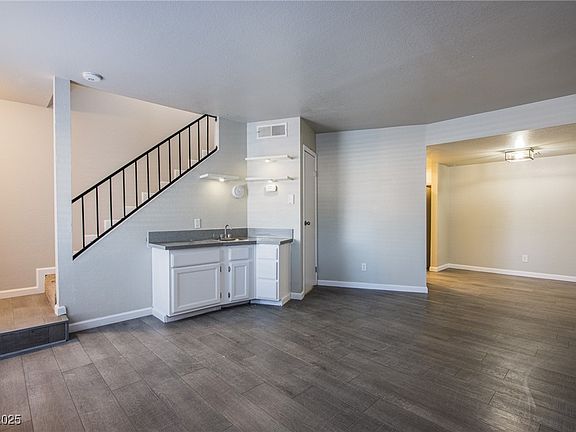 This Downstairs Entry as the downstairs entry and upstairs loft-bedroom make this Home a peaceful place without the possible issues of an upstairs or downstairs tenant-- Because the entire unit is YOURS! Recently remodeled Quartz Counters-Vinyl Plank Flooring, allow easy living and the parking dedicated to the unit right in front of the entry patio allow a feeling of comfort and convenience when you come home. The Balcony off the Upstairs Loft and the Patio Below are spacious and allow a direct view of the Mountains to the east. The convenience of Las Vegas Blvd, Pecos Blvd, the I-15, and Cheyenne allow you easy travel in all directions including about 10 minutes to Downtown Las Vegas! Come see the Home at the very front of the Community just past the Security Guard Booth with wide open parking multiple spaces in the front of the community! Ready to move in, Clean, Convenient, Cozy and available NOW!