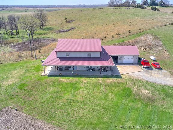 Move in ready and waiting for me owners. This home is amazing AND thr seller wants to help by paying $5,500 towards closing costs and offering a 1 yr home warranty! This 2 story home built with red iron, metal studs, and a metal roof is just as amazing as the country views and wildlife surrounding it! Cedar shutters added to all windows recently. 4 or 5 bedroom with master and bedroom/office downstairs and 3 bedrooms, game room, and oversized storage room upstairs. Inside has an open floorplan new kitchen sink and lighting, a 20ft high vaulted ceiling, and each room has extra storage space. Extra insulation in the home keeps utility costs low. Outside has a wrap around porch so you can view the scenery from almost every side of the house and the perfect spots for relaxing with a cup of coffee in the morning. New wood shutters and door trim add to the character of the home. The oversized garage is 30x40 and has plenty of room for your cars, yard equipment, and a boat! M/L 5.5 acres of cleared and wooded land and the mineral rights are included. Just a short 22 minute drive to Tulsa.
