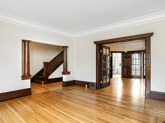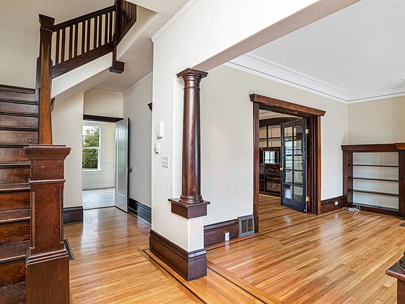 This classic early 20th Century beauty has beautiful hardwood floors and stunning architectural details in the living and dining rooms. The living room has a wood burning fireplace and the dining room has a huge, built-in china closet. The upgraded kitchen has a modern gas range and stainless steel refrigerator and dishwasher. There is one full bath on the entrance level of the home and a second full bath upstairs. The four bedrooms are all on the top floor, including two facing 16th Avenue, one very large bedroom in the middle of the house, and one bedroom with windows facing the back yard. The house has a large attached garage with modern washer and dryer. Updated washer and dryer in the garage, wonderful sun room on the ground level. Last but not least, the home has a very large, fenced back yard with a flagstone patio.