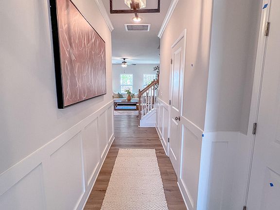 The Smithfield at Duncan's Creek is designed for the way you live today. With 4 bedrooms, 2.5 baths, and 2,010 sq. ft., this home on nearly an acre offers both room to spread out and spaces designed for gathering. The 2-car front-load garage and extended front porch add welcoming curb appeal, while inside, every detail balances comfort and style. The heart of the home is the open family room, featuring a side fireplace with custom built-ins and space to relax and connect. The kitchen makes everyday life effortless, with a messy kitchen that includes a sink and window, an extended café framed by three large windows, and a Power Pantry for organization. Smart details like the Smart Door Delivery Center add convenience, while the covered patio or deck extends your living outdoors. Upstairs, four bedrooms offer flexible space for family, guests, or a home office, including a spacious owner's suite designed as a private retreat. At Duncan's Creek, you'll enjoy large homesites, fiber internet, and nearly a mile of walking trails. Just minutes from downtown Lillington, Raven Rock State Park, and an easy drive to Fuquay-Varina or Sanford, the community connects natural beauty with everyday convenience. This Smithfield will be ready to call home in March 2026.