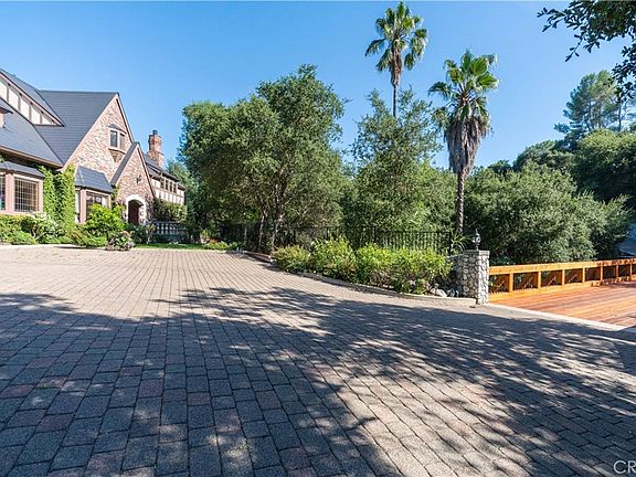 A show stopping blend of old-warm charm and grandeur, this remarkable English Tudor home sits on an impressive 1.6 acres and 8,533 sq ft of living space within the prestigious and private La Canada Flintridge area. Tucked away from the road for ultimate privacy, this home can be enjoyed in solitude with a private gate that opens to a private driveway. Cross the newly updated wooden bridge and take in the sounds of the natural creek and park-like grounds that surround the home. Enter the front door and be welcomed by the stately foyer which opens to the grand Staircase and soaring ceilings. Host intimate dinners in the adjacent Dining Room. Chef's kitchen with top-of-the-line appliances and oversized Island is perfect for an amazing culinary experience. All ensuite bedrooms are spacious and have access to their own balconies throughout the home. Primary suite boasts an opulent sitting area, large walk-in closet, and fabulous master bathroom with dual vanities, rainfall shower, and tub. Home office/library is cozy with its own fireplace. Additional den is versatile and can be used as another bedroom or office space. Upstairs also hosts the incredibly spacious Game Room with full bar and tons of room for activities and lounging. The lower floor is designed as a hidden getaway with sound-proof movie theater, fully equipped with reclining leather seats, projector, and surround sound system so you never have to go to the movies. Record and produce your own music in the recording studio downstairs with its own control and live rooms. Get your workout in with the gym or dance studio, which can be converted to another space as well. An elevator allows for easy travel amongst the three floors. Tons of outdoor space that can be used for a tennis court, basketball court, gardens, or events. This extraordinary and rare estate is both a timeless beauty and an entertainer's dream.