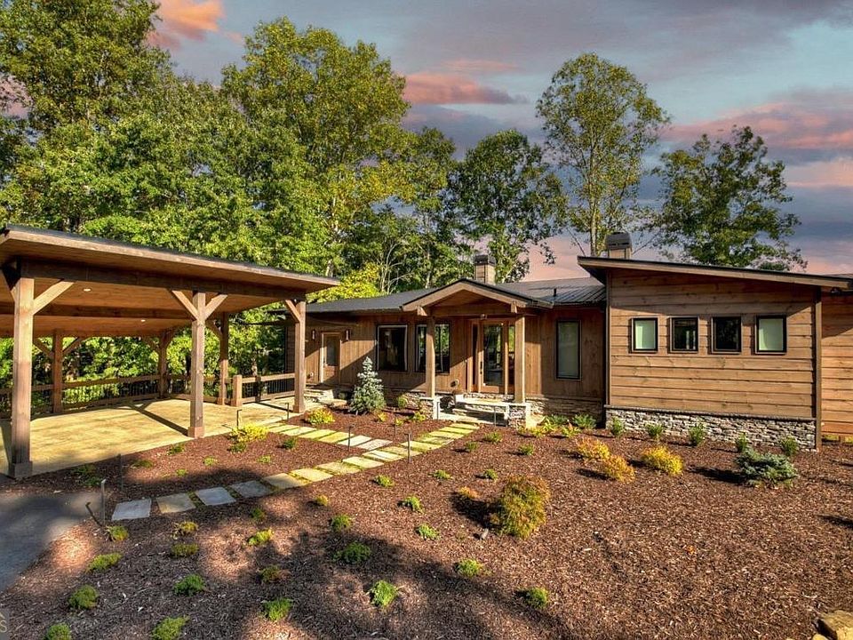 Experience elevated mountain living in this stunning 3 bedroom, 3.5 bath mountain-modern retreat showcasing some of the best long-range, unobstructed mountain views in North Georgia. Perfectly positioned just 15 minutes from historical downtown Blue Ridge, this exceptional home checks every box-breathtaking scenery, gentle and usable land ideal for outdoor enjoyment, low-maintenance landscaping, and covered parking with a convenient carport. The main level features a show-stopping luxury kitchen with sleek modern finishes, opening into a spacious great room anchored by an indoor fireplace and wall-to-wall views. A stylish half bath and a private primary suite complete the level, with the primary offering panoramic mountain vistas, a spa-like en-suite bath, and a walk-in closet designed for comfort and elegance. Just off the great room, the main-level porch offers plentiful space for outdoor gatherings and features a beautiful outdoor fireplace-perfect for cozy evenings and roasting marshmallows while taking in the mountain views. The terrace level is an entertainer's dream, featuring a generous recreation area, wet bar, additional great room with fireplace, and two guest bedrooms-each with its own private bath-providing exceptional privacy and flexibility for guests. Professionally designed and offered fully furnished, this home delivers a seamless turnkey experience. Enjoy an easy, stress-free commute with nearly all paved access and no steep roads. Meticulously maintained and in pristine condition, this property is ideal as a full-time residence, second home, or high-performing investment. Currently a top-producing short-term rental, this is a rare opportunity to own a luxury mountain home that truly has it all. Be sure to check out the professional virtual tour!