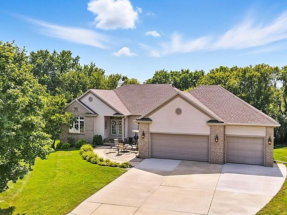 PRIVATE. PRISTINE. PERFECT. Nicely tucked in a cul-de-sac, this 1999 ranch sits on a .58 acre lot that includes a beautiful backyard bordered by woods. Upon entering the home, you’ll immediately know that it has been impeccably maintained throughout the years. The main level boasts an open floor plan with a formal dining area, primary bedroom suite, a second bedroom/office, guest bath, a kitchen offering lots of cabinet space and Cambria countertops, plus main floor laundry combined with a half guest bathroom. A see-through gas fireplace can be enjoyed from the living room AND the casual dining/sitting area which opens to the deck. Head downstairs to discover three additional bedrooms, one of which will delight you with a suite surprise! Also in the lower level - a full guest bath, finished bonus room, great storage space and a family room with another gas fireplace and access to the large paver patio. Additional plusses include an in-ground sprinkler system, an attractive front paver patio with room to gather, and a finished area in the heated garage that is the current owners’ sports sanctuary. Be sure to allow plenty of time in your private tour to explore everything that makes this your perfect new home!