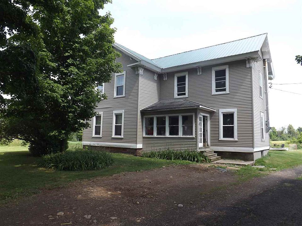 Huge Farmhouse situated on 21.1 acres of land. This 5 bedroom house has many original details including detailed wide wood trim, tall baseboards, and wide plank flooring. There is a large eat-in kitchen that has a pellet stove and exposed beams above. The living room is large, but cozy thanks to a wood stove. Adjacent to the living room there is a large dining room that has room for many. The house also has an attached guest suite that has an entrance through the house as well as its own exterior entrance. It has a separate kitchen, living room, bathroom, and space for bedrooms upstairs. Outside there is 21.1 acres and an almost 5,000 sq. ft. Barn to explore. There is a mix of open fields and wooded lots.