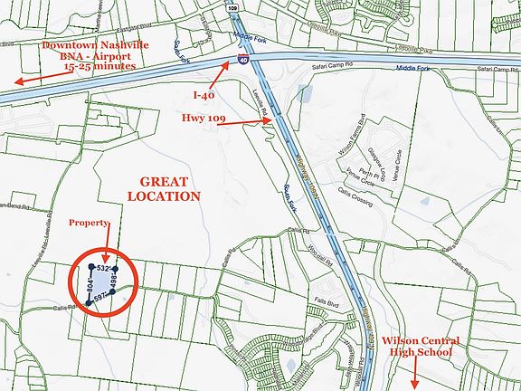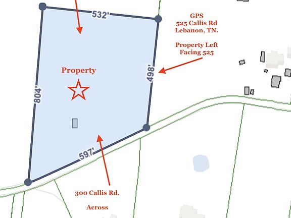 GREAT location, 20-25 Minutes from BNA & Nashville, 5-minutes from exit 232 @ Hwy 109 / I-40 with Publix, Resturants, shopping and all your needs within minutes. Also, 8-10 Minutes from the heart of Lebanon in one direction and same to Mt. Juliet in the other. Drive Callis Rd and See all the AMAZING Properties & Country Setting yet close to everything! PLEASE NOTE: FOR GPS Use 525 Callis Rd. Lebanon and property and this property is to the left and/or 300 Callis Rd and it's Diagonal Across the street.