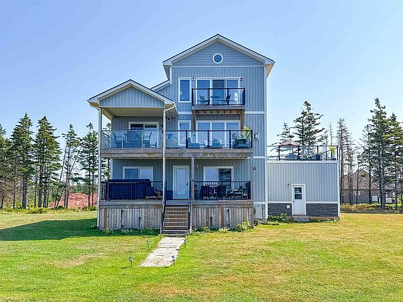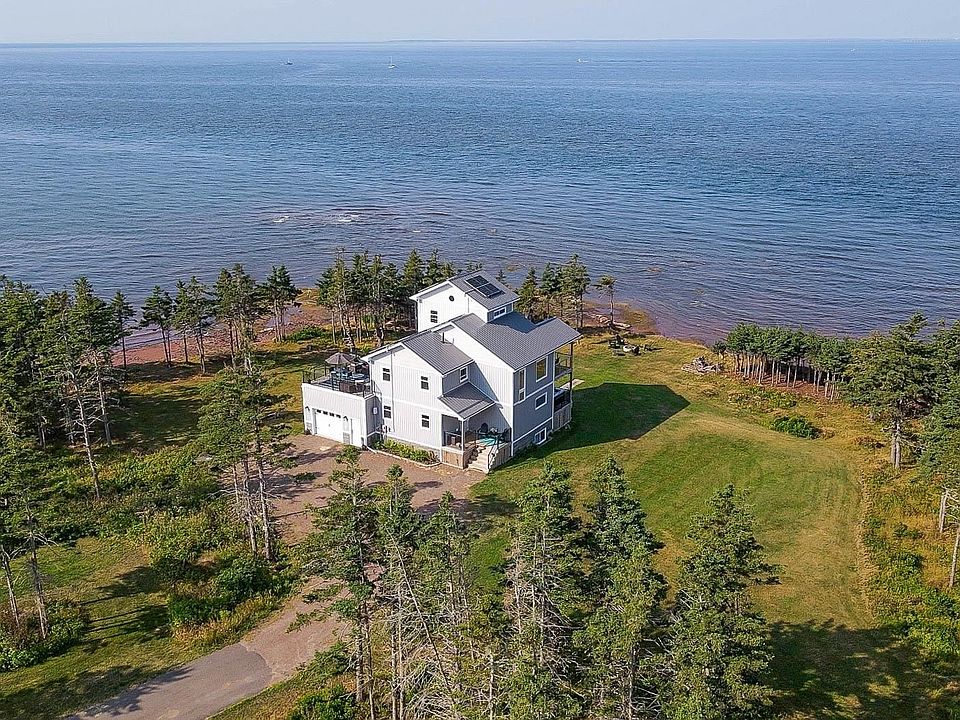A Truly Exceptional four-level, year-round Coastal Residence nestled at the exclusive Bells Point. This Architectural "Beach House" Masterpiece offers an extraordinary level of privacy and serenity, with sweeping, uninterrupted Waterfront views over the Confederation Bridge, New Brunswick, and Nova Scotia that transform with the seasons. Set on a meticulously positioned 0.76-acre parcel and surrounded by a vast protected coastal buffer, the property is embraced by secluded sandy beaches and dramatic rocky shorelines—creating a sense of complete immersion in nature. Expertly crafted in 2022 by the renowned Bayside Builders, this stunning home evokes the sensation of being aboard a luxury vessel, with panoramic ocean vistas from every window and expansive outdoor living spaces that seamlessly integrate with the landscape. The unique interior embodies refined modern coastal elegance starting with The lower two levels where the private bedroom suites are located, while the primary living and entertaining spaces are elevated on the third floor to maximize the breathtaking views in the Custom Kitchen open to the Living and Dining room with an inviting propane fireplace. A custom-designed staircase takes you up to a dramatic fourth-level viewing tower, complete with a wet bar, offering a truly spectacular perch for soaking in the ever-changing seascape.This rare all-season retreat is more than a home—it’s a private coastal sanctuary where luxury, design, and nature come together.