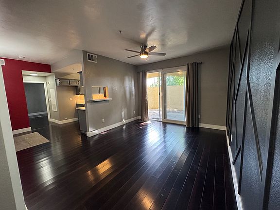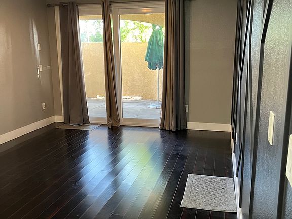Ready to move in. Nice wood flooring. Modern kitchen with quartz countertops, indoor stackable laundry. Bedroom has walk in closet and additional closets. 3 closets in bedroom. Large living room. Nice outdoor patio with high wall to allow privacy. Small storage area next to patio. Large full bathroom. Ready to rent now.