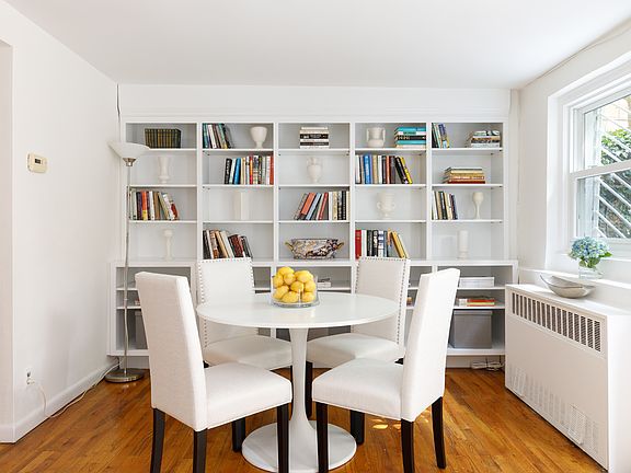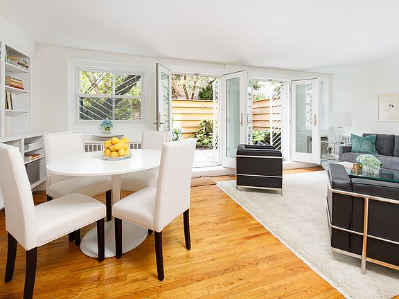 GARDEN COOP CONVERTS TO 2BD Extra large one bedroom which easily can convert to two bedrooms in a 25 ft. brownstone on a tree lined block on the corner of Carroll Gardens and Cobble Hill. There is a very generous entry foyer with coat closet and a space for a home office. The living room has a full wall of custom built-in shelves great for books and your precious possessions and dining area. There are hardwood floors, in wall air conditioner and double French doors leading to a zen rock garden with bluestone pavers, light and water. Enjoy reading, relaxing, cooking and dining in your private garden. The open modern kitchen has white upper and lower cabinets, built-in wine storage, double stainless sink, Liebherr refrigerator, Bosch dishwasher, LG stove and under counter lighting. Over sized bedroom has plenty of space for king bed and end tables, large comfortable chair, chest and two closets and built-in wall air conditioner. Your bathroom has grey and white tiling, triple mirror and combo tub and shower. Extra bonus: common washer and dryer in hall, basement storage, bike storage, pet friendly, low maintenance, nearby shopping, dining and park.