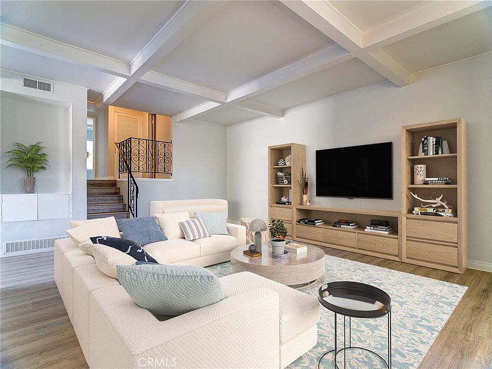 Excellent value and located in desirable Bixby Knolls with easy walking distance to restaurants, shopping, entertainment, church, parks and more. This is an end unit on the first floor with two patios. Living room is large and spacious with dramatic height and impressive coffered ceiling detail. The split level has bedrooms together on the second floor. The master bedroom is very large with an in-suite bathroom and sitting area. The dressing area has his-and-hers closets. The second bedroom is also quite spacious and steps away from the second bathroom. There is an eat-in kitchen with dining area. The kitchen feathers a brand new dishwasher. Throughout you have brand new LV plank flooring, new light fixtures and faucets. The 1-car garage is detached and features a new exterior garage door, a keyless entry pad and additional storage area. Well-maintained building with low $330 monthly fee. An ideal location with nearby public transit and easy access to freeway and Metro. A must see!