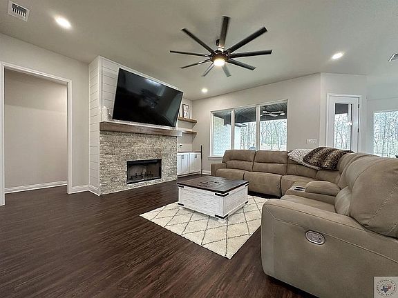 This custom-built home features a modern design with spacious rooms and an open kitchen area, perfect for both functionality and style. The split bedroom layout ensures privacy and comfort, while the wood-burning stove creates a warm, inviting atmosphere. Equipped with gas heat and a tankless water heater, the home offers both efficiency and convenience.