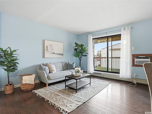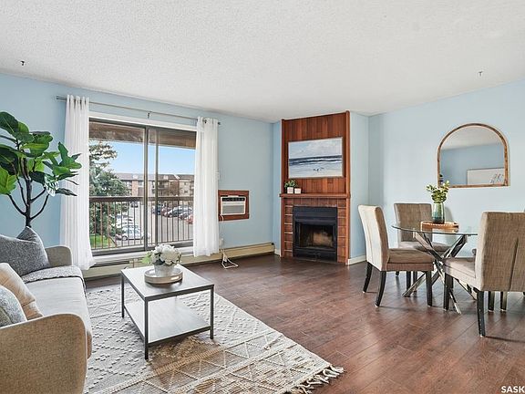 Welcome to #302-375 Kingsmere Boulevard in Lakeview, Saskatoon. This top floor corner unit offers modern living in a central location. It’s a great investment for first time buyers, investors, those downsizing or seeking maintenance-free home ownership. Laminate flooring spans throughout the entire home (no dusty carpets here!), along with fresh paint, and neutral finishes. The kitchen includes lots of countertop area for prep, and plenty of cupboard space. The dining area nestles perfectly next to the living area, which has a lovely decorative fireplace hearth and mantle. There’s a “cat proof” sliding screen door to a covered West-facing balcony, which includes a secure exterior storage room (perfect for winter tire storage, bikes, etc.). The unit includes one oversized bedroom, and one full bathroom. Extra space for storage is located in the hallway (potential future space for washer/dryer), along with a linen closet. There is one electrified parking stall conveniently located right at the front doors, plus visitor parking just steps away. The complex is a 7 minute drive from the University of Saskatchewan and is within close proximity to shopping and amenities on 8th Street. The building is situated near bus stops, and is a short walk to Lakeview pond and parks. Condo fees are $379.08/month and include all utilities with the exception of electricity. Shared coin-op/credit card laundry on 2nd floor. This building is pet-friendly (restrictions apply).