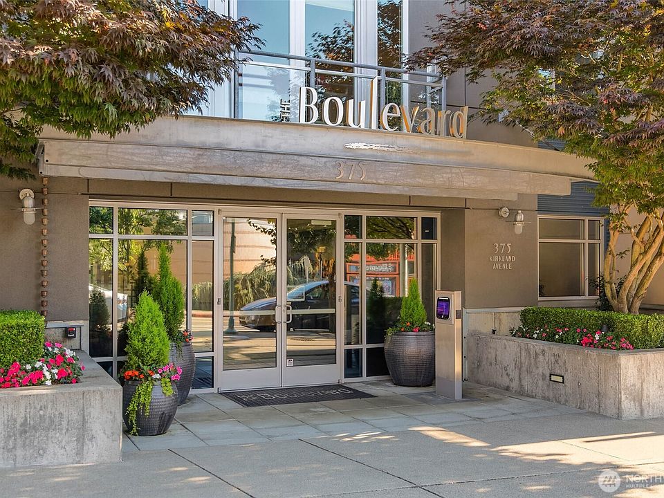 Enjoy the desired downtown lifestyle in this top floor condo at The Boulevard! Updated crisp & clean kitchen with white cabinets & stainless appliances. Convenient open layout flows easily into dining & living areas. Enjoy views from your balcony, overlooking the expansive, manicured courtyard below. Spacious nook with desk & built-ins provides versatility for your lifestyle. Primary suite w/double vanity, soaking tub & generous closet. Large second bedroom with full hall bath. In unit W/D, abundance of storage, 2 pkg spots in secured underground garage. Well-run HOA, no rental cap, on-site mgmt, pet friendly. Steel concrete building, a rare find in Kirkland. Unbeatable location is steps from PCC, Peter Kirk, dining & shopping.