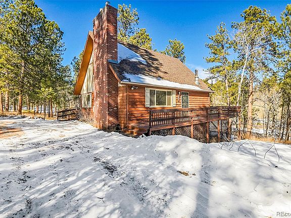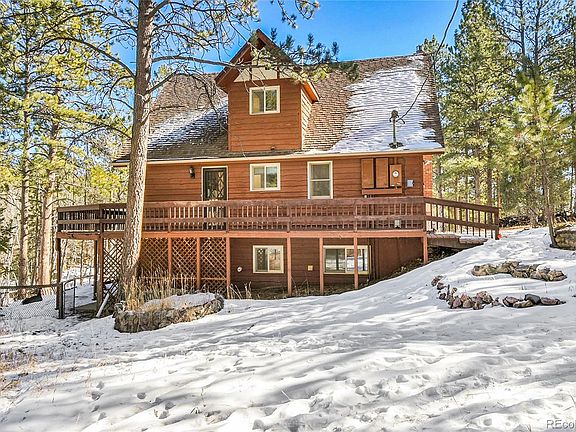 Escape the city and embrace mountain living in this spacious 3-bedroom, 3-bathroom cabin on a stunning 2-acre lot in the desirable Burland Ranchettes neighborhood of beautiful Bailey, Colorado. Tucked at the end of a quiet cul-de-sac, this property offers peace, privacy, and endless potential. Inside, the home has a great flow, featuring a bright living room, a large dining area, and a well-sized kitchen with a spacious pantry. The main floor also includes the primary bedroom for convenient single-level living; beautiful forest views from every window. Upstairs, you’ll find two large bedrooms with massive closet space, perfect for extra storage or a growing family. Tucked in privately in the woods all the rooms are quiet and spacious. Downstairs, the walkout basement boasts a large rec area/ flex room—perfect for a home office, gym, or additional entertainment space. It is a fantastic opportunity for buyers looking to create their dream retreat in the foothills with a few personal touches and updates. Plus a secondary family room with gas fireplace that would make a great 4th bedroom if needed. Home features a large expansive deck that wraps around 3/4 of the entire home; endless aspens and tall pines make your backyard and relaxing evening dinner- pure heaven. The flat lot and the privacy are incredible plus a huge 4-car garage with 220V power & a massive attic provides incredible storage, and the circular driveway allows for easy access. Two outbuildings/sheds offer space for small animals or extra storage, making this a great option for those seeking a mix of convenience and country living. Burland Ranchettes features a community park, hiking trails, and a fishing pond, plus downtown Bailey is just minutes away. With less than an hour’s drive to the airport, this is the perfect spot for those who want to escape the hustle and bustle while staying connected. Don’t miss this chance to own a spacious home on an incredible lot in one of Bailey’s best neighborhoods!