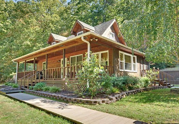 The setting that anyone would envy! Quaint setting with well manicured yard features 3BR/1BA home with covered porch. Offers laminate wood floors with bedroom on both levels with upper level having separate outside entrance. Features 2 car garage and additional workshop area. Check this out--it's the one that everyone will want.
