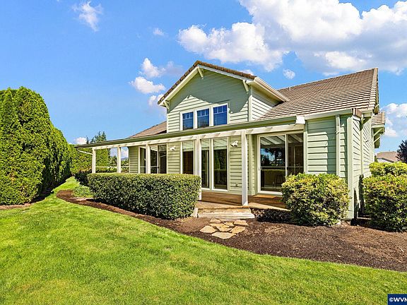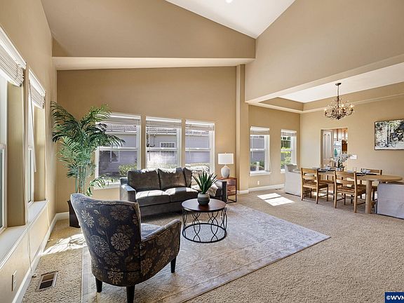 This beautiful home in The Villas offers a functional floor plan, brand new exterior paint and peaceful views of lush green space — all from a covered deck. Soaring vaulted ceilings and a walls of windows fill the home with natural light. The family room offers a gas fireplace surrounded by custom built-ins. The kitchen is open to the the family room. The dining room is just off of the living room. This home has a true Primary Suite with a private bath. SEcond bedroom plus a den/office. Large laundry room. Other highlights include: a two car garage with cabinets and storage, Monthly HOA fees of $277 includes front yard and common area maintenance. Set in a quiet, well-kept community with a beautiful natural setting, this home truly has it all — space, light, and the peaceful views that make The Villas such a special place to live. Don’t miss your chance to call it home!