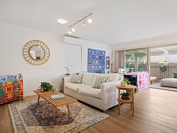 The heart of the home is the beautifully reimagined kitchen, featuring a vaulted ceiling that enhances the sense of space and light. Glass-front cabinetry, sleek stainless steel appliances and elegant finishes create a refined and functional culinary space. Natural light pours in through strategically placed solar tubes, highlighting the home's open layout and inviting ambiance. Enjoy seamless indoor-outdoor living with a generously sized private patioperfect for relaxing or entertainingand an additional exterior area ideal for planting your favorite bulbs or seasonal flowers. Modern amenities include a stacked washer and dryer, dual-paned windows and sliding glass door, and a rare enclosed garage for added convenience and storage.