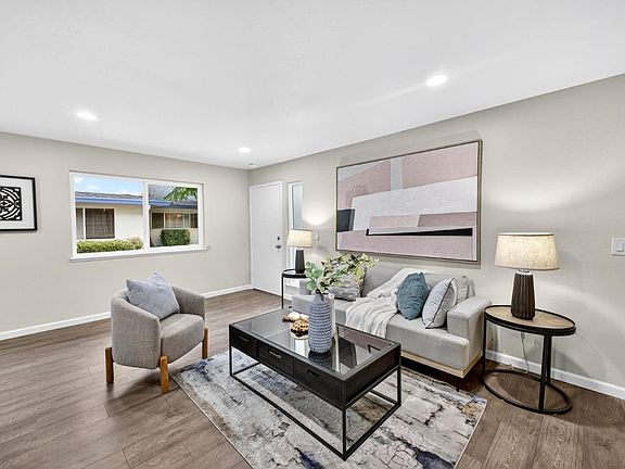 Welcome home to this beautifully refreshed 2-bedroom, 1-bath condo located in the highly desirable Hamilton Downs community within walking distance to Downtown Campbell. With modern updates, warm finishes, and an unbeatable location, this home blends comfort, style, and convenience. The open-concept living space showcases a kitchen with crisp light shaker cabinets, sleek black countertops, and upgraded appliances including brand new in-unit washer and dryer. Luxury vinyl flooring flows seamlessly throughout the living, dining, and kitchen areas, where large windows fill the space with natural light. Refreshed lighting adds a sophisticated touch in both the living area and bedrooms. Upstairs you'll find two bedrooms with generous windows, a full bath, and a washer and dryer for everyday convenience. Additional features include a dedicated carport with built-in storage cabinets. Just steps from Downtown Campbell, enjoy easy access to vibrant restaurants, coffee shops, wine bars, local boutiques, The Pruneyard, and the beloved Sunday farmers market. With close proximity to highways 17, 280, 880, and 85, commuting to leading tech employers such as Apple, Nvidia, and Adobe is effortless. Don't miss this opportunity to own in one of Campbells most walkable and connected neighborhoods.