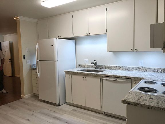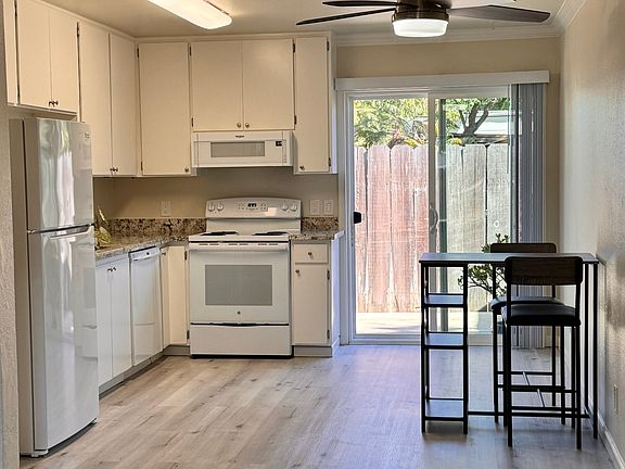 Updated Ground Floor partially furnished 2 Bedroom, 1 Bathroom apartment w/ no Steps in private triplex. Great location. Quiet neighborhood. Low density living. Open Floor Plan. Newer Double Pane Windows, Plank Flooring and Crown Molding throughout. Wood-grain vinyl plank (waterproof) flooring in kitchen, bathroom and laundry closet. Spacious all electric Kitchen with newer refrigerator and built-in microwave oven. Six-Panel Doors. In-unit newer Washer and Dryer. Heating and Air Conditioning. Covered Carport with designated space and additional street parking. Comes with a large Private Storage Unit and Backyard with Patio. Kitchen: Granite Countertops Stainless-steel sink Microwave/vent combo Electric range Garbage disposal Dishwasher Updated cabinets Ceiling fan with light in Dining area Bathroom: Updated Vanity with Granite Countertop Newer Sink and faucet Newer Lighting Fan/Vent Full Tub and Shower with Newer fixtures Bedrooms (2): Large closets with Mirrored closet doors Air Conditioner and Heater units Backyard: Private fenced space with pavers and planting beds Large Patio Area Gazebo / canopy Included in rent: Perimeter gardening service, perimeter electric and irrigation, designated carport parking space and locking storage closet. Great Location - Near Downtown Livermore, Restaurants, Shopping, Theaters, ACE Train Station, 5-minute drive to freeway access and Much More. Address: 375 North M Street, Livermore, CA 94551. Good credit score, $2,695 security deposit, income (minimum: 2.5 times the rent) good: work history and/or employment offer letter, credit and background check required. Application fee is $60. Bring a copy of your credit score, credit report and pay stubs to speed up the application process. NON SMOKERS only. NO dogs, but a cat would be considered. Do NOT contact me with unsolicited services or offers Owner pays for perimeter water, electric and gardening service. Includes designated covered carport space, uncovered parking space first come first served, large locking storage closet without any additional fees.