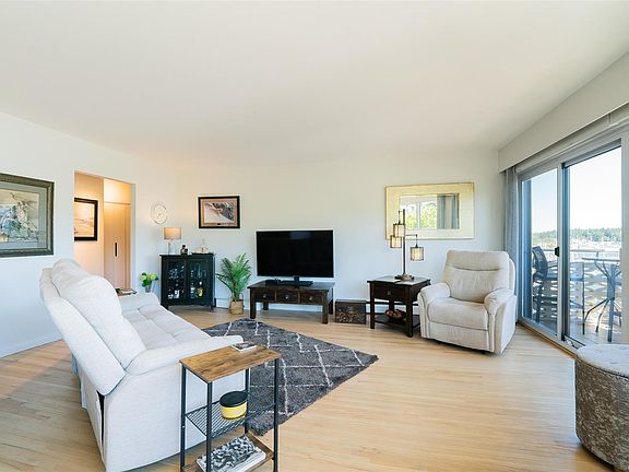 Welcome to your dream coastal retreat! This stunning three-bedroom condo boasts sweeping ocean views of the marina, yacht club, and charming Protection Island. Inside, you’ll love the open-concept layout, gleaming hardwood floors, and stylish modern touches throughout. The beautifully updated kitchen features a sleek wall oven, smooth cooktop, and a casual eating bar—perfect for morning coffee or evening entertaining. Step out onto the covered deck from the living room and soak in the vibrant waterfront atmosphere year-round. The spacious primary suite offers room for a king-size bed, plus dual closets for all your storage needs. A well-appointed four-piece bathroom and a versatile storage room—with potential for future in-unit laundry—complete the package. Located in a prime spot with the waterfront walkway just outside your door, this 55+ community offers a carefree lifestyle where heat and hot water are included in the strata fee. (Please note: no pets.)