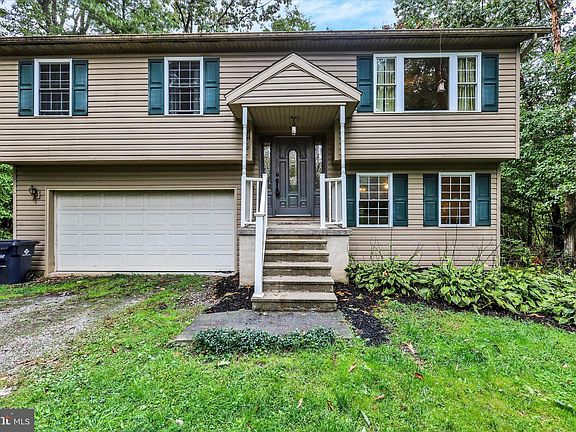 Have you ever dreamed of having a private wooded home in the mountains near Michaux State Forest while still remaining a part of a thriving community? Then this 3 BR, 2 BA split foyer home, located on a 1.01 acre lot inside the community of Hidden Pines, is perfect for you! Inside you'll be greeted with a spacious combination kitchen and dining area, that also connects to the living room. The open concept in this space makes entertaining friends and family a breeze! In the kitchen you'll find vinyl flooring, oak cabinets that provide tons of storage, and access to the deck. The wooden deck provides the perfect space to have your morning coffee or evening barbeque while overlooking the back yard. Easily flow from the kitchen into the living room where you'll find wood flooring, a ceiling fan, and a large window allowing light to flood in, making this space extremely bright and comfortable! Head back the hallway to find the 3 bedrooms and a full hall bath. All 3 bedrooms feature a ceiling fan and carpet flooring. In the primary bedroom you'll find an on-suite full bath. Make your way downstairs to be greeted with a spacious family room. The family room features carpet flooring, a ceiling fan, and a pellet stove (does not currently work). Laundry can be found conveniently out of sight in the family room closet. For your convenience there is access to the backyard and the 2 car garage from the family room.