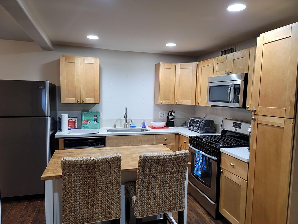 Downstairs unit in 2 unit house. Separate entrance and yard. 2 bedrooms 1 full bath. Mostly furnished with beds, sofa and love seat, kitchen table and chairs. New washer/dryer. Full kitchen. Water, electricity, gas and wifi included. New large screen TV. House is on west side of 5 freeway and has freeway noise in yard. Inside is quiet.