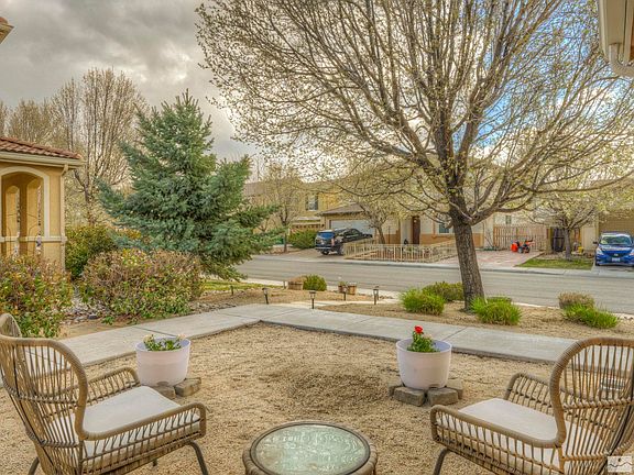 This listing presents a stunning single-story home with 3 bedrooms and 2 bathrooms located in the desirable Curti Ranch neighborhood. The great room features an office/den that can be accessed via French doors and is separate from the bedrooms. The living area boasts upgraded bamboo flooring, while the bedrooms are carpeted. The windows are beautifully adorned with custom venetian shutters. The kitchen has been recently updated with solid surface quartz countertops and stainless-steel appliances., The large yard provides sweeping views of the mountains and includes a spacious patio for outdoor enjoyment. Storage is available in the shed, making organization a breeze. This home has been meticulously maintained and is low maintenance, allowing for ample time to explore nearby attractions such as Lake Tahoe, Mount Rose, and downtown Reno. Fresh interior paint has been applied within the last 2 years. Don't miss out on the opportunity to view this amazing home.