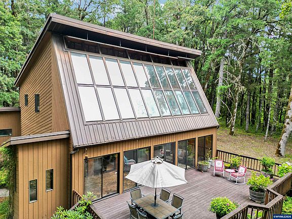 10 Acres of Secluded Paradise with Unique Solarium! Enjoy the best of both worlds with this incredible 10-acre property—peacefully tucked away in your own wooded oasis, yet just minutes from town and amenities. One of the standout features is the stunning vaulted solarium with automatic windows, offering year-round enjoyment of Oregon’s natural beauty. The home is set back from the road and features a convenient circle driveway with dual entrances, perfect for easy access and maneuvering large equipment. Primary bedroom has 2 closets and a great connected flex space perfect for an office or hobby room. A spacious shop with a wood-burning stove provides ample space for all your tools and toys. You will appreciate the one stall tack room space for small live-stock and there’s also an RV cover and a serene pond on the property. Additional highlights include Brand new holding tank, New stove installed just 6 months ago, Updated countertops, Central vacuum system, Heat pump serviced annually. This property is a rare blend of functionality, privacy, and natural charm—don’t miss your chance to make it yours! Home is built in a solar envelope design for maximizing solar energy for heating and cooling.