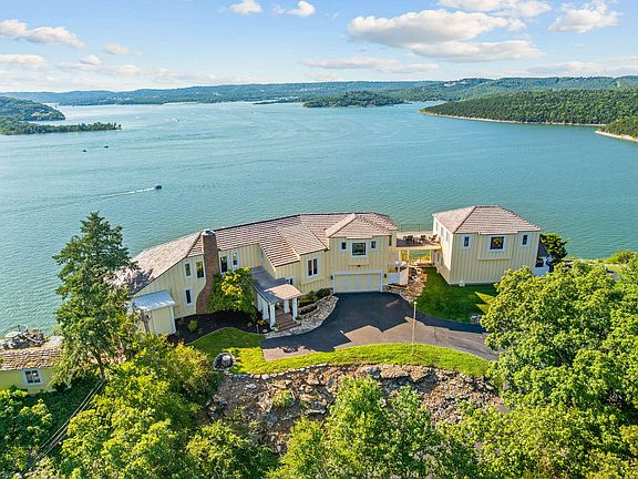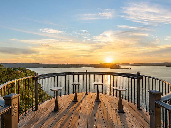 This is the kind of home dreams are made of.Perched 175 feet above Table Rock Lake, The Bluff House at Slane Chapel is one of the lake's most iconic residences--featuring a 25-ft cantilevered pod with unmatched panoramic views.Built in the 1960s by Lonnie C. Fritts and designed by architect Don Russell, the home was constructed using timber from a deconstructed railroad bridge. Signature details include reclaimed wood beams, a 2-inch solid oak roof, stained glass, spiral staircases, a beehive fireplace, and extensive modern upgrades.Renovations honor the home's heritage while enhancing livability--wood flooring, new synthetic slate shake shingles, beautiful stone countertops, upgraded HVAC, artisan tilework, and custom iron railings throughout the interior and exterior.Once home to Clyde the orangutan from Every Which Way But Loose, this property is rich with history and absolutely one of a kind. No matter where you sit, you'll enjoy sweeping views of the lake and Ozark Mountains.The viewing pod, brilliantly engineered without needing support, now includes two additional beams for lifetime security. The deck and pod is also made of Pia lumber, one of the strongest woods you can get all the way from South America.Need space for guests or family? A separate 3 bed, 3 bath guest home with kitchenette offers ideal accommodations for multi-generational living or in-law quarters.Your private boat slip is included, just a short ride down the road. The home sits on two parcels, and an adjacent lake view lot--acquired to protect privacy--is available for purchase.This property can't be recreated. If you've been dreaming of a one-of-a-kind lake retreat--this is it.