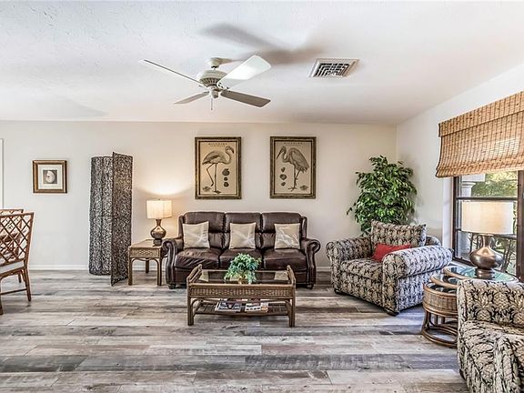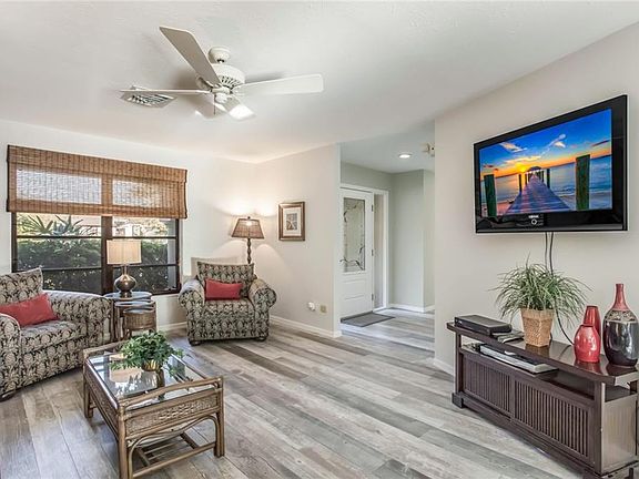 Terrific south facing canal front home in the historic neighborhood of Cape Haze. Over 100 feet of concrete seawall, deep water, with no bridges and just a short distance to the Intracoastal Waterway. Well maintained home has beautiful new wood plank tile flooring, granite counters, updated master bath, large open kitchen and bar space, wood burning fireplace, spacious pool and lanai area. New Trex deck off the pool lanai leads down the charming paver walkway to a large paver patio canal-side, perfect for boat trip preparation or just entertaining. 12lb + boat lift and wide canal access, the property is just 5 lots in from the Pelican Bay and the Intracoastal Waterway. The home is situated in a fantastic section of Cape Haze with quaint streets winding under large banyan and ficus trees, surrounded by canals and open water vistas. The property is less than a mile to historic Boca Grande, world-class fishing, secluded sandy beaches, and several full service marinas.
