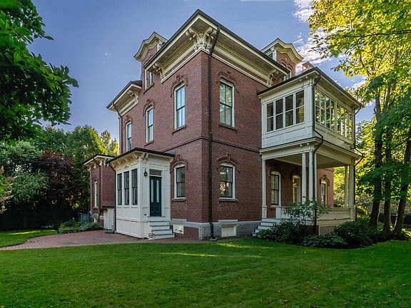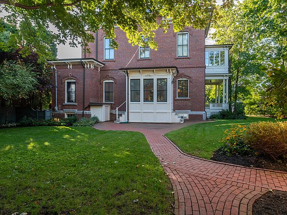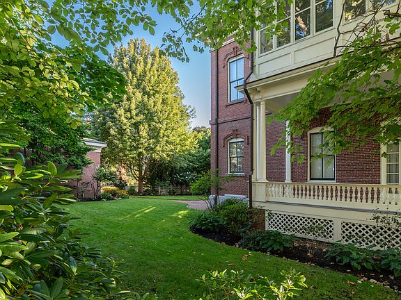 Rich in history this stunning property on the West End has been one of Portland's most admired homes, commissioned by Maine's Governor Washburn in 1868; he was also a founding member of the Republican Party. This brick Italianate masterpiece is both elegant and comfortable and offers a gated courtyard with beautifully landscaped grounds and a carriage house entrance beyond. Within the 5900± sf, there are 6 bedrooms, 4 baths and the spacious primary bedroom suite enjoys its own enclosed porch. Some of the features include 15-foot ceilings, 7 fireplaces, each with an ornate carved mantel, a breathtaking library with floor to ceiling custom glass front and mahogany bookcases and ornate crown moldings throughout. The 3rd floor offers the ideal space for an au-pair or guests with 2 bedrooms, a kitchenette, living space and additional areas for storage.
